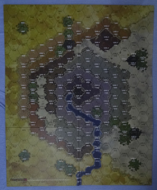 Die einzelnen Hexteile lassen einen das aber durchaus verzeihen. Wie gewohnt, sind sie zweiseitig und bieten eine breite Auswahl an unterschiedlichen Modifikationsmöglichkeiten. Diverse Höhenlevel von 1 – 3, Tiefenlevel von -1 – -3. Auch Wälder und Gebäude haben wieder einzelne Hexteile und wenn man sie umdreht, bekommt man jeweils passend Rough oder Rubble zur Auswahl. Ideal zur Geländezerstörung.