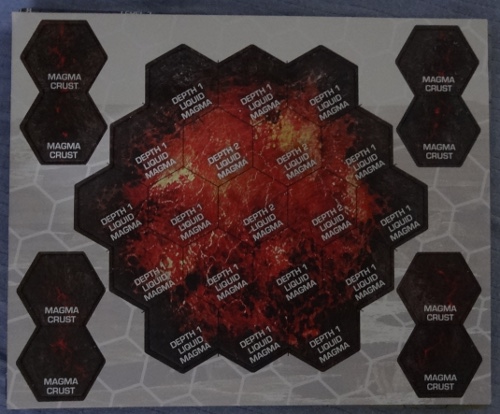 Da ich bereits vor langer Zeit bestellt hatte, hatte ich große Hoffnungen auf das angekündigte Vorbestellerhex. Und tatsächlich, es war enthalten. Ich bin nun stolzer Besitzer eines Vulkans mit einem Magmasee auf der Rückseite.