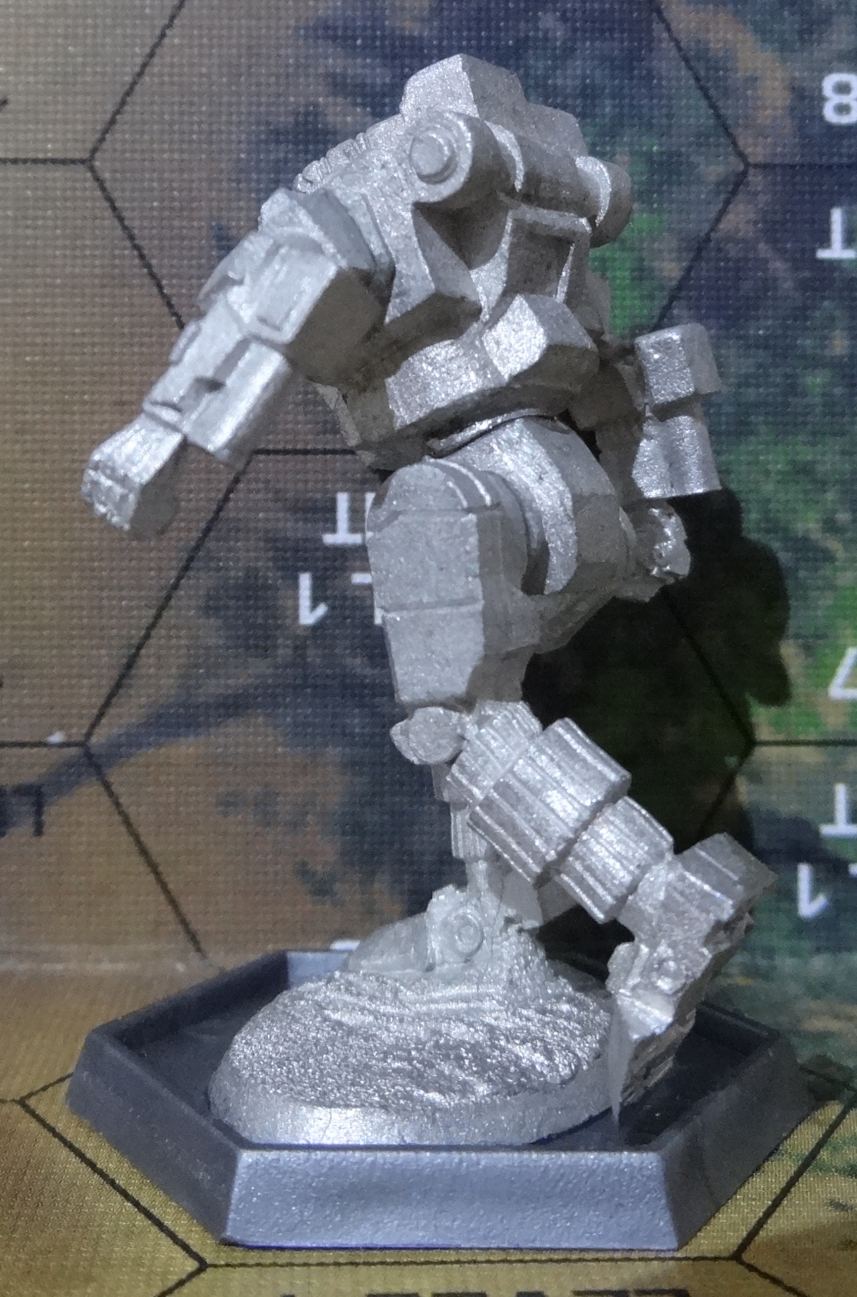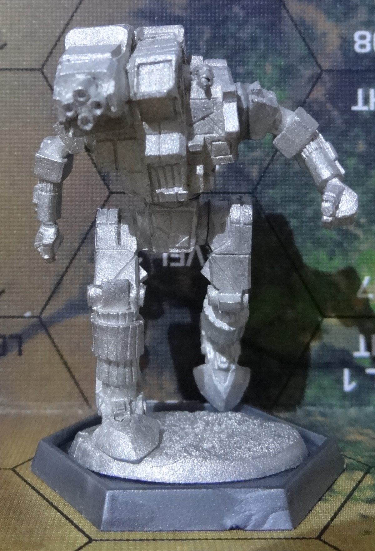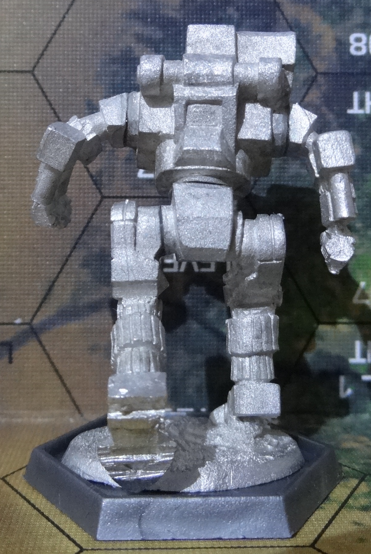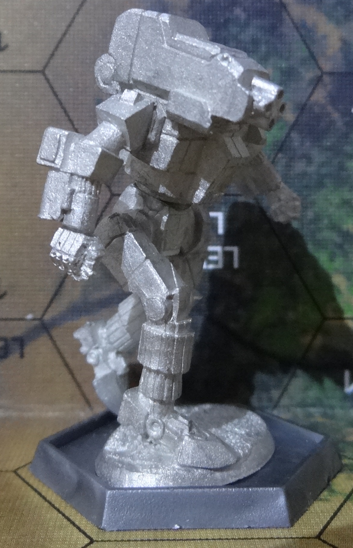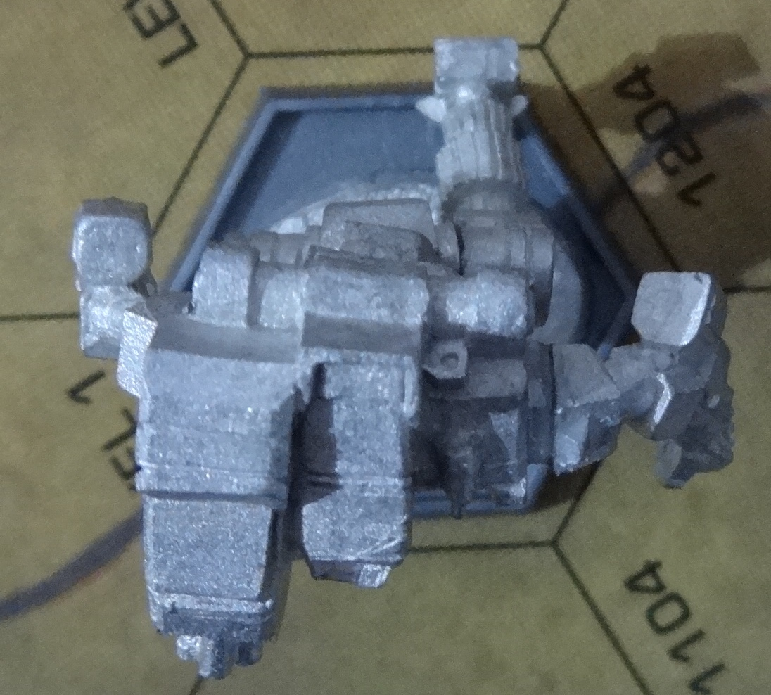 Die Verpackung. Werft einen Blick drauf, ob sämtliche Teile enthalten sind. Enthalten sein sollten: Arm-/Beinleiste, Torso und Base mit Bein und Hüfte Beginnen solltet ihr damit die Base auf eine richtige Base zu kleben und das linke Bein anzubringen. Nachdem das trocken ist, kommen die Arme an den Torso. Ihr könnt das gleichzeitig machen, wie ich, oder nacheinander. Je nachdem, was euch leichter fällt. Der letzte Schritt: Torso und Beine verbinden Das TRO Bild. Der hässliche Hintergrund stammt direkt aus TRO Prototypes. Ich hatte keine Lust, ihn aufwändig zu entfernen. Der Hunchback HBK-7R von vorne – anklicken für großes Bild. Der Hunchback HBK-7R von vorne links – anklicken für großes Bild. Der Hunchback HBK-7R von hinten links – anklicken für großes Bild. Der Hunchback HBK-7R von hinten – anklicken für großes Bild. Der Hunchback HBK-7R von hinten rechts – anklicken für großes Bild. Der Hunchback HBK-7R von vorne rechts – anklicken für großes Bild. Der Hunchback HBK-7R von oben – anklicken für großes Bild.