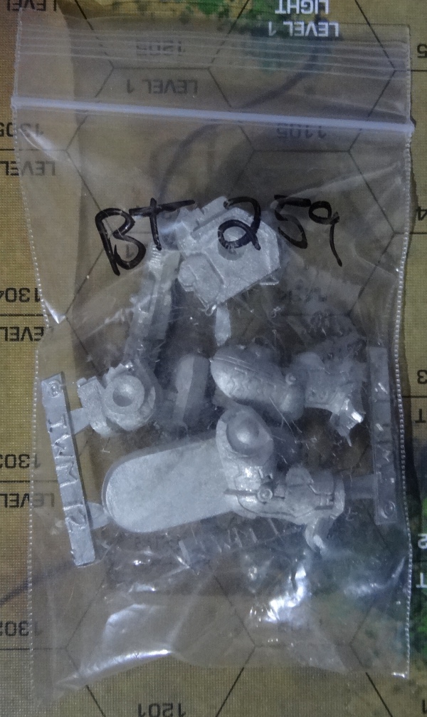 Zwei ER Small Laser sowie eine Magshot Gauss Rifle befinden sich in diesen Mounts und werden zusätzlich von einer SRM 2 (OS) begleitet. Mimetic Armor macht die BA zusätzlich auch noch zu einem schwer zu entdeckenden Gegner. Da die Mini direkt von IWM kommt, befindet sie sich in einem kleinen Plastiktütchen. Enthalten sein sollten: Beinleiste, Torso, Armleiste, Base/Hüftleiste sowie die Magshot Als erstes kommt die Hüfte an den Torso Da mir die beiliegende Base zu instabil war, habe ich das rechte Bein auf eine normale Base angebracht. Wenn das Bein absolut trocken ist, wird der Torso angebracht. Um weniger Gewicht auf das rechte Bein zu legen, empfiehlt es sich das linke Bein mit der Base zu verkleben (außer ihr stiftet) Jetzt kann die Magshot angebracht werden. Dann folgen die Arme. Einzeln oder gemeinsam, ist dabei irrelevant. Das TRO-Bild