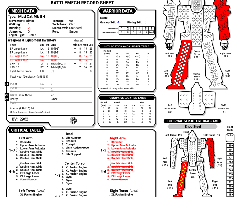 Die Record Sheets sehen auf den ersten Blick fast genauso aus, wie die offiziellen Sheets, aber bei genauem Hinsehen zeigen sich Unterschiede.
